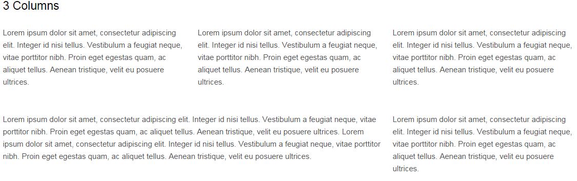 The column layouts are very easy since we are using a grid system. You can use the same column divs on a full width page or a page with a sidebar. See the Columns pages for an example on how to implement various sizes.